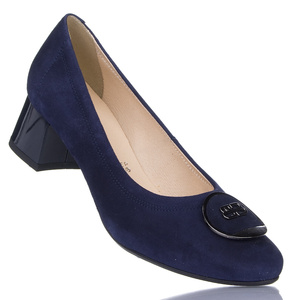 Granatowe czółenka na klocku zamszowe Bioeco Arka 6843 granat