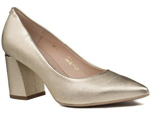 Złote czółenka na obcasie Kotyl 549 złoty ef skórzane