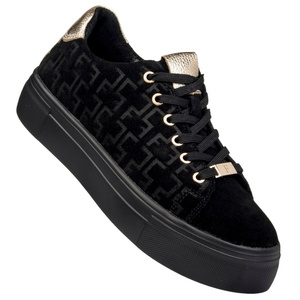 Czarne sneakersy na platformie damskie Filippo 6850/25 skórzane zamszowe