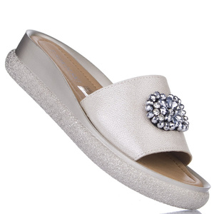 Sandały płaskie wsuwane damskie złote Lemar 40327 kryształ złoto