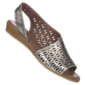 Złote ażurowe sandały damskie Artiker 56C2551 skórzane na koturnie
