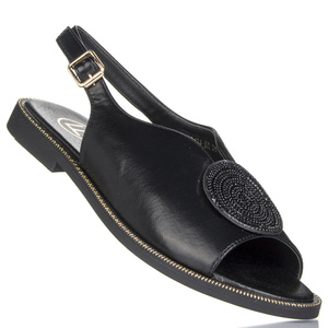 Czarne Sandały płaskie damskie Filippo DS6229/25 BK z ozdobą