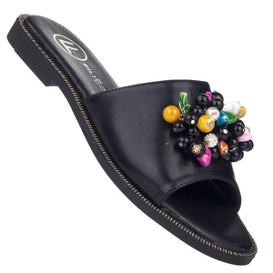 Czarne Klapki damskie płaskie Filippo DK6233/25 BK koraliki
