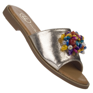Złote Klapki damskie płaskie Filippo DK6233/25 GO koraliki
