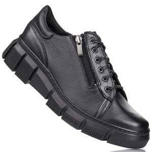 Skórzane półbuty na platformie T.Sokolski J25-403 czarne wiązane