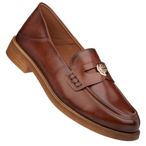 Brązowe lordsy damskie Potocki 12678 eleganckie półbuty wsuwane