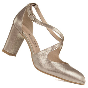 Beżowe czółenka z paskami na krzyż Kotyl 5923 skórzane buty ślubne
