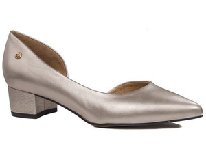 Złote czółenka na obcasie Kotyl 549 złoty ef skórzane