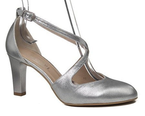 Czółenka damskie srebrne Kotyl 1289 srebny ef skórzane buty taneczne