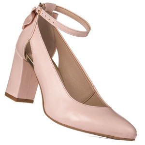 Niskie czółenka na klocku różowe Kotyl 0663 róż lico skórzne