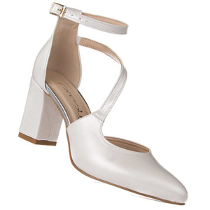 Białe czółenka z paskami Kotyl 7077 biała perła skórzane buty ślubne