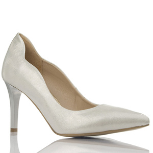 Czółenka z paskami Prestige 2281 biała perła skórzane z brylantami cekinami