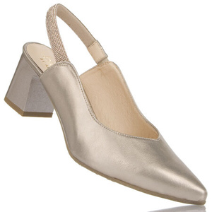 Złote czółenka ażurowe Caprice 22501-44 skórzane buty damskie
