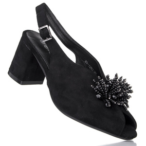 Czarne sandały z obcasie damskie z ozdobą Potocki 12621BK black