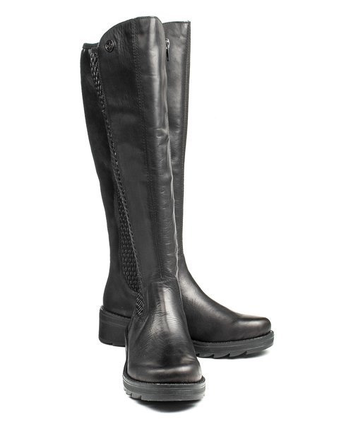 - Kozaki damskie zimowe X0554 wykonane z naturalnej skóry połączonej ze stretchem. Obuwie w czarnym kolorze.