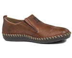 Komfortowe mokasyny Rieker model B2476. Obuwie w modnym brązowym kolorze. Cholewka ażurowa, co zapewnia przewiewność dla stóp. Z zewnątrz 100 % skóry naturalnej. Wnętrze to połączenie materiału i naturalnej skóry. Wkładka skórzana. Podeszwa to wysokogatunkowe tworzywo o wysokości 3 cm. Buty męskie EXTRA WEIT- o powiększonej tęgości. Obuwie Rieker to solidna i wygodna propozycja na okres wiosenno-letni.