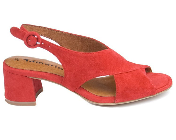 - Sandały firmy Tamaris 28357 wykonane z naturalnej skóry w czerwonym kolorze.