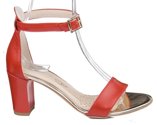 - Sandały damskie na słupku Prestige 2050 wykonane z naturalnej skóry w czerwonym kolorze.