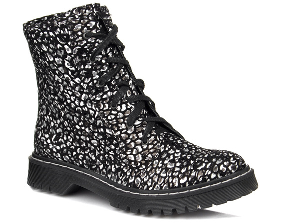 Glany Maciejka model 1609 wykonane z naturalnej skóry w biało-czarne wzorki. Trzewiki damskie wykonane z naturalnej skóry licowej. Buty posiadają porządną gumową podeszwę. Wewnątrz buty posiadają skórzaną wyściółkę i wkładkę. Botki Maciejka to tylko najlepszej jakości materiały i modne wzornictwo. Trzewiki Maciejka to niezwykle modna propozycja dla kobiet z poczuciem stylu i podążające za najnowszymi trendami.