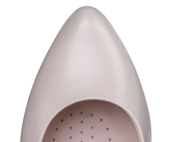 - Czółenka na słupku Sala 5051 wykonane z naturalnej skóry w beżowym kolorze.