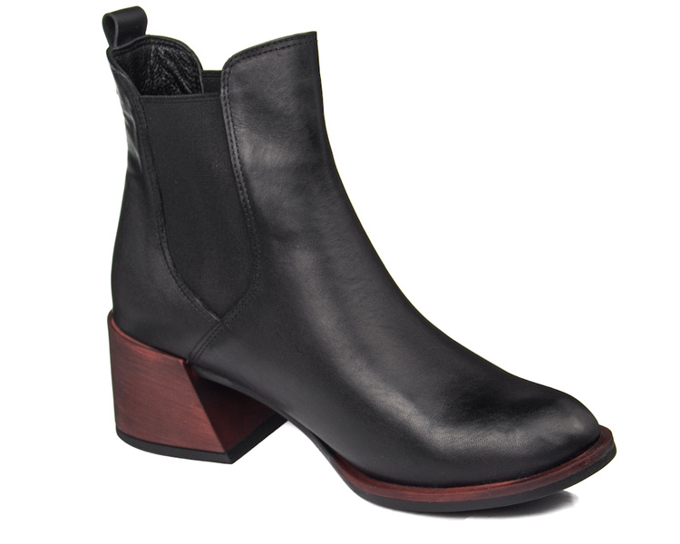 - Botki damskie wykonane z naturalnej skóry licowej w czarnym kolorze