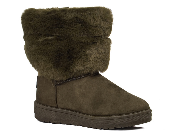 - Botki damskie mukluki Big star II274124 w kolorze khaki z ciepłym futerkiem.