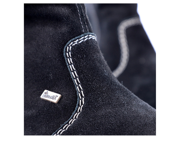 - Kozaki / Botki damskie zimowe Z7171 wykonane z naturalnej skóry zamszowej w czarnym kolorze.