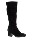 Kozaki firmy Lemar model 70109. Cholewka wykonana z naturalnej skóry welurowej w czarnym kolorze. Buty na wygodnym obcasie w kształcie klocka o wysokości 6,5 cm. Nosek w delikatny szpic. Podeszwa to wyskogatunkowe tworzywo. Idealne buty na sezon jesienno-zimowy. Modne kozaki ocieplone materiałem.