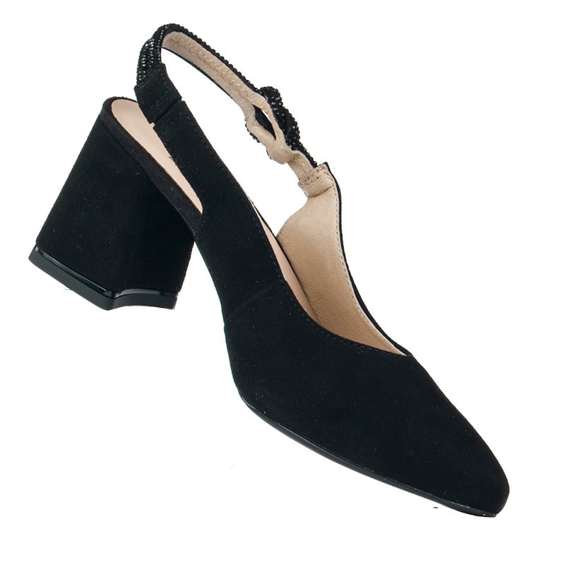 - Sandałki damskie na obcasie Kordel model 2327 wykonane z naturalnej skóry welurowej w czarnym kolorze