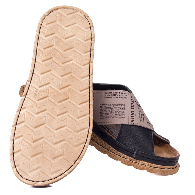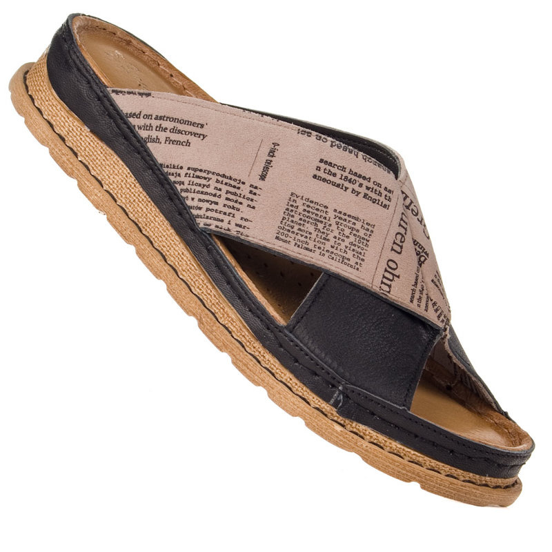 - Klapki damskie Maciejka 04986-01/00-0 czarno brązowe wykonane z naturalnej skóry