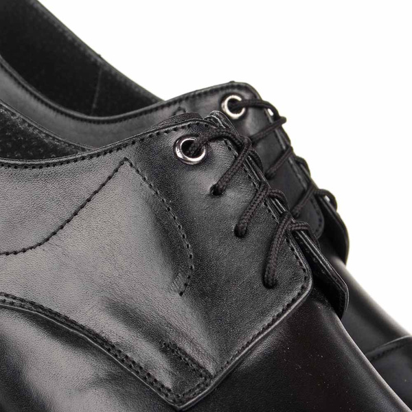 - Półbuty wizytowe męskie Moskała 846 wykonane z naturalnej skóry w czarnym kolorze