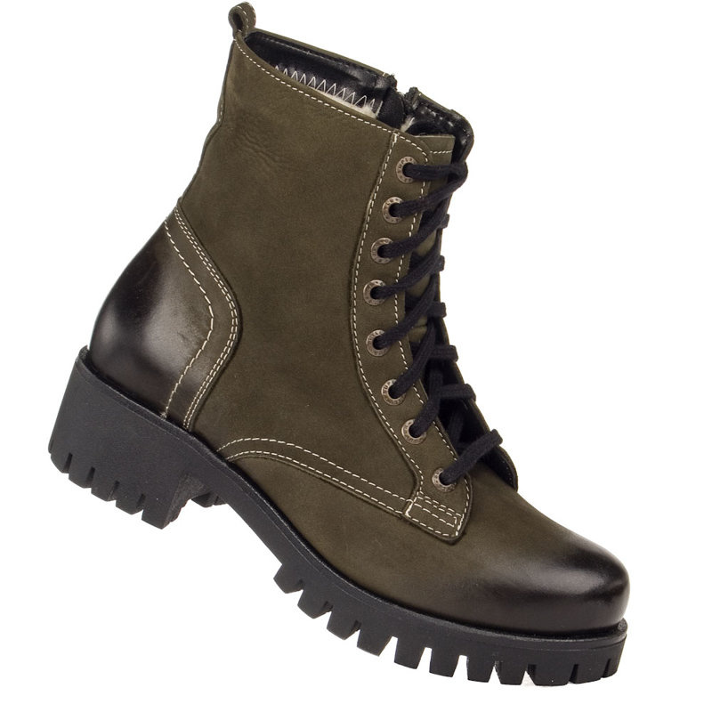 - Botki trzewiki Agasi K75 wykonane z naturalnej skóry w kolorze zielonym