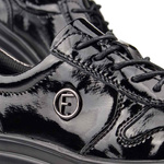 - Damskie półbuty Filippo wykonane z naturalnej skóry lakierowanej w czarnym kolorze