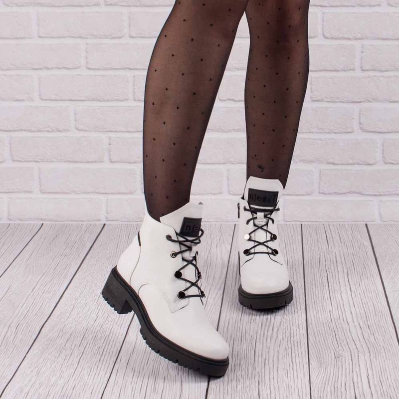 - Damskie botki skórzane Nessi wykonane z naturalnej skóry licowej w białym kolorze