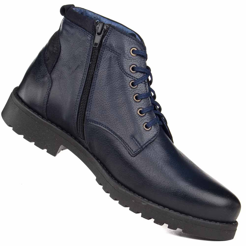 - Botki, trzewiki Nikopol 716 wykonane z naturalnej skóry w granatowym kolorze.