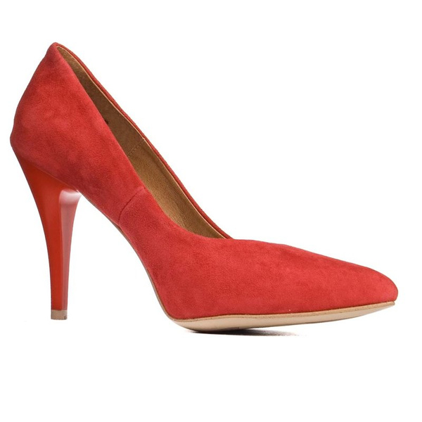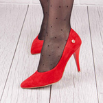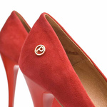 - Szpilki Prestige 2107 wykonane z naturalnej skóry zamszowej w czerwonym kolorze.