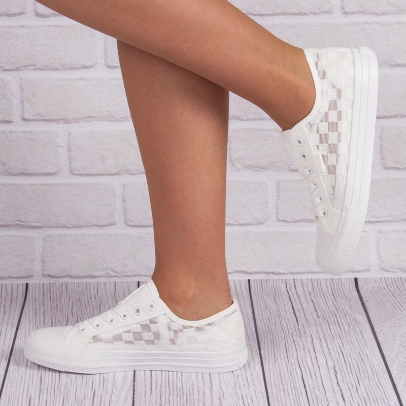 - Trampki damskie Big Star LL274071 tekstylne w białym kolorze z modną siateczką