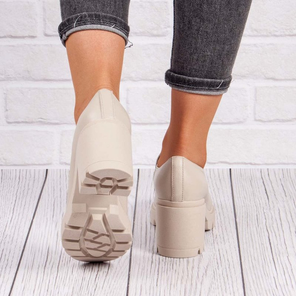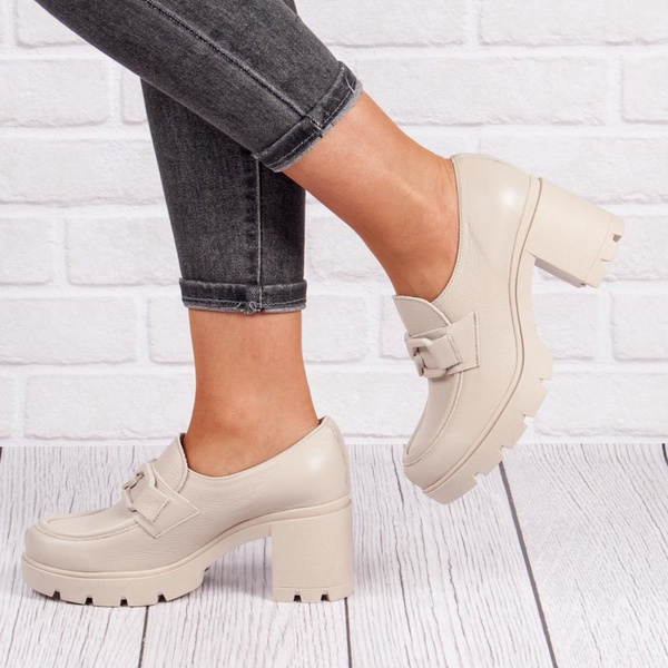 - Półbuty na obcasie Lemar wykonane z naturalnej skóry licowej w beżowym kolorze