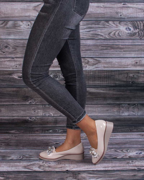 - Półbuty damskie z ozdobą Potocki model 23-12020BG wykonane z ekotworzywa w beżowym kolorze