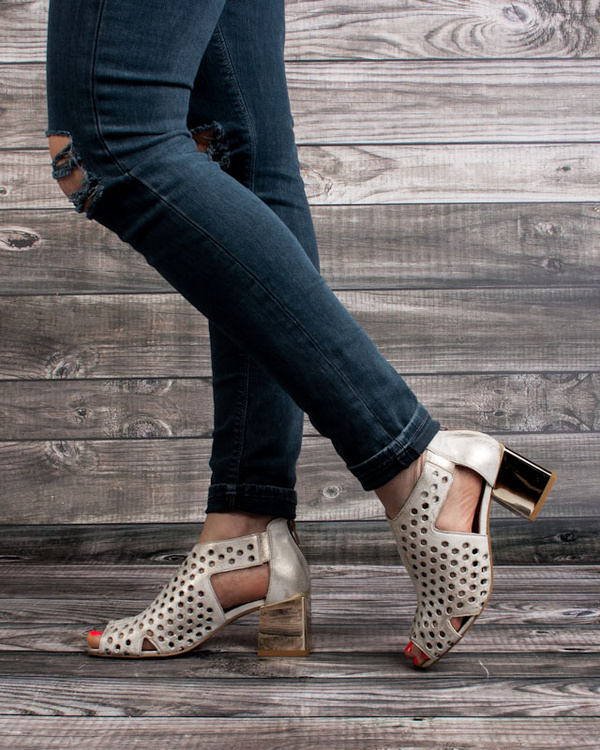 - Botki damskie letnie Maciejka 04593-25/00-5 wykonane z naturalnej skóry licowej w złotym kolorze