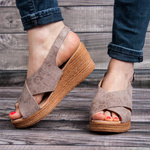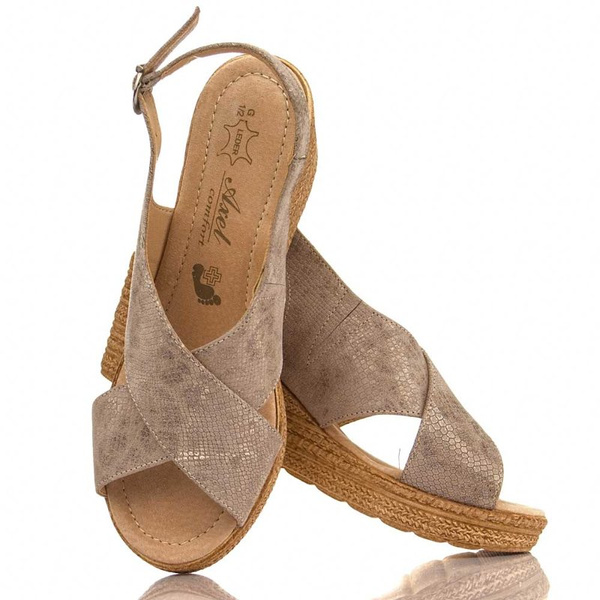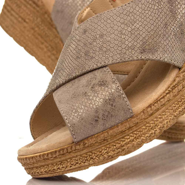 - Sandały damskie na koturnie Axel model 2508 beż wosk pyton wykonane z naturalnej skóry