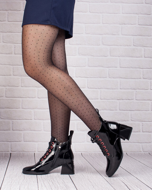 - Botki damskie D&A by Barski model MR870-66 Black wykonane z ekoskóry lakierowanej w czarnym kolorze