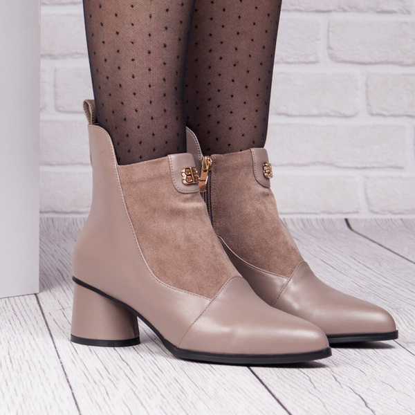 - Botki damskie D&A by Barski model MR870-96 beige wykonane z ekoskóry licowej i zamszowej w bezowym kolorze, botki na obcasie z zamkiem