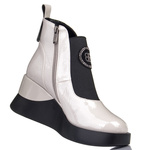 - Botki damskie na koturnie D&A by Barski model MR870-22 L.Grey wykonane z ekoskóry lakierowanej w beżowym kolorze
