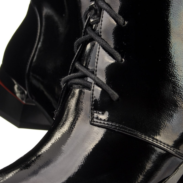 - Botki wiązane Artiker 49C0206 black wykonane z naturalnej skóry lakierowanej w czarnym kolorze
