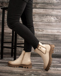 - Cholewka wykonana z ekoskóry licowej w beżowym kolorze