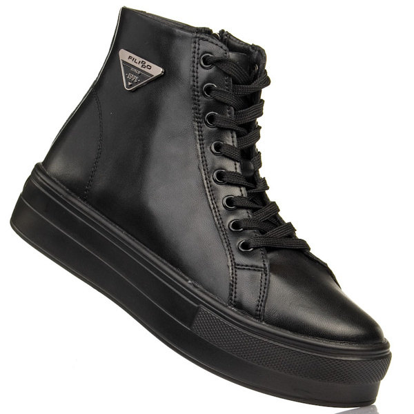 - Botki damskie trampki Filippo wykonane z naturalnej skóry licowej w czarnym kolorze