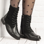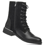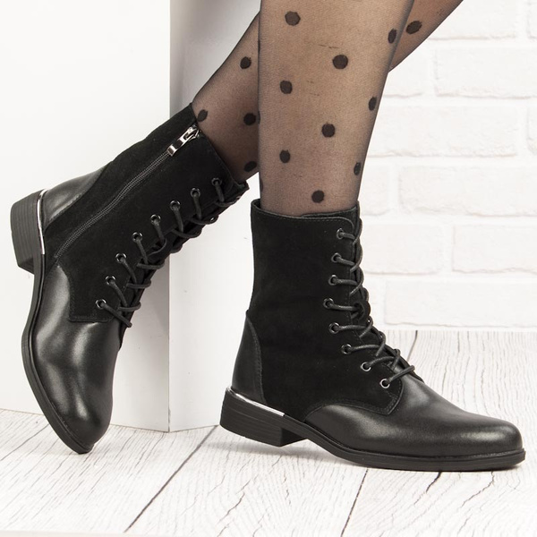 - Trzewiki damskie posiadają cholewkę wykonaną z naturalnej skóry licowej i zamszowej w czarnym kolorze
