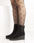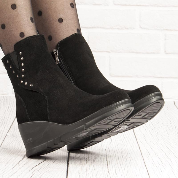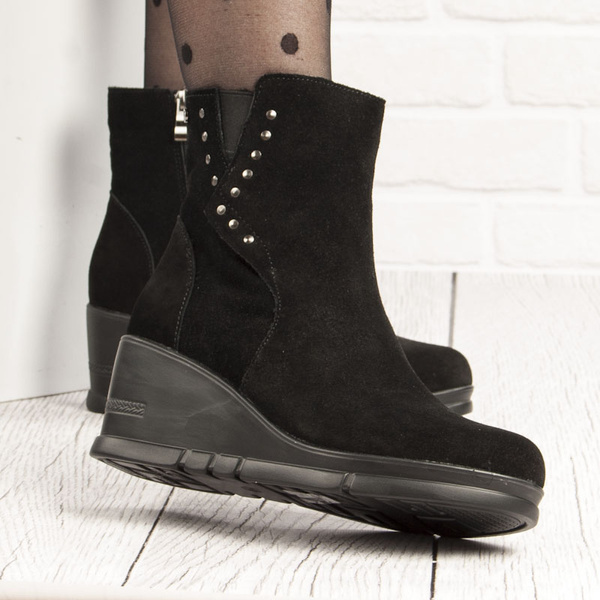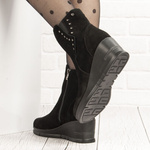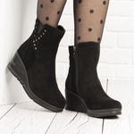 - Botki na koturnie damskie Filippo BT4904/23 BK wykonane z naturalnej skóry zamszowej w czarnym kolorze
