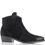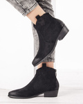 - Botki damskie Potocki model 24-12189BK wykonane z ekozamszu w czarnym kolorze